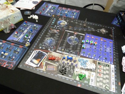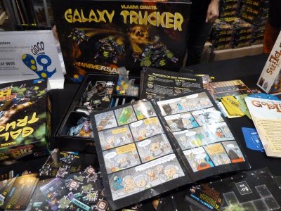 Being at the CGE booth, I was also able to catch a glance of the Galaxy Trucker Anniversary Edition which contains the basic game and its two expansions. As a special bonus, the game contains some additional cards and a comic-book featuring those delightful truckers. However, only the comic book is exclusive to this combo-pack, and so the bonus cards will be give as a promo item for players who purchase the new expansion Galaxy Trucker - Another BIG Expansion here at the SPIEL. By the way - something for the fans in Germany. As Petr Murmak from CGE told me, a German edition of the Anniversary Edition will be done by HEIDELBERGER!
