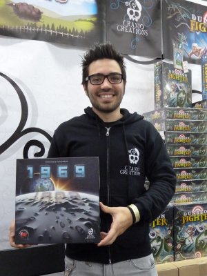 After entering the halls I directly headed for Hall 9, because my first playtesting session for the day was scheduled at the booth of Italian publisher CRANIO CREATIONS. With 1969 the guys from CRANIO have brought a game which attracts me both because of its theme and its nature as being a tactical dice-rolling game, and so I was happy that Lorenzo from CRANIO had reserved me a seat so that I got an opportunity to start the day with this game.