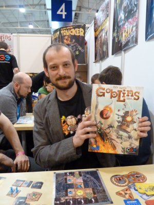 Myself, I had my next playtesting session of the day scheduled at the booth of CZECH GAMES EDITION, but instead of the awaited introduction to Tzolk'in: The Mayan Calendar I was recommended to have a look at Golins Inc., another of CGE's releases here at the SPIEL '12. Author Filip Neduk already was waiting for me, and since I had somehow missed this game during my preparations for the SPIEL I was curious how this surprise would turn out for me!