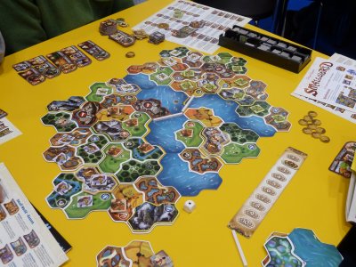 With saturday being history, we are approaching the final stretch of this year's voyage through the world of boardgames. However, it's still one more day to look forwards to, so there is no need for sadness yet. In fact, while typing these introductory words I feel quite spirited, and this may be partly accredited to the party I attended tonight. Having a beer or two without eating too much all day long might not have been a rather well idea. But we will see - let's just start with today's report!