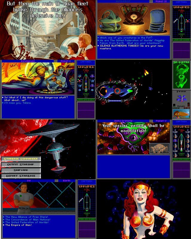 As part of my convention special this year I would like to take you on a trip back in computer game history to the year 1990, when programmers Fred Ford and Paul Reiche III created a space combat computer game which has succeeded in gaining cult status. This game was ACCOLADE's Star Control II. Indeed, the game offered quite entertaining sequences of space combat between various types of ships, but even more important was the fact that the game had a very complex background story in which the player was given the task to save the galaxy from the evil Ur-Quan Hierarchy. Numerous sentient races had to be convinced to join the player's cause, and for this lots of missions had to be performed. There were long sequences of dialogue, and each race had its own specific style of communication, sometimes sinister and dark and sometimes outright hilarious (mind you, this was BEFORE computer games featured speech!).