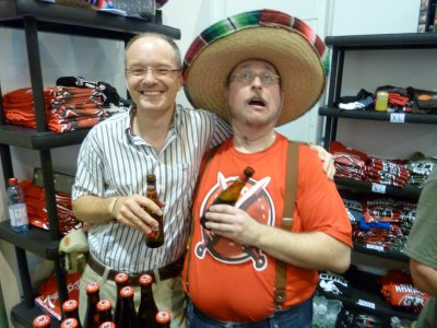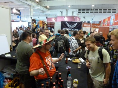 Quite interestingly, Nicole and I also learned that Mr. Weininger is the organizer of the Essen Warm-up Day, an event which happened on wednesday and to which all international gamers arriving for the SPIEL were invited. Happening at a central place here at Essen, international gamers who have registered for the event will be welcomed with some games to test and free food and drinks for the whole day. So, if you should plan to visit the SPIEL in the future and if you want to learn more about this event, please visit the website of the Essen Warm-up day!