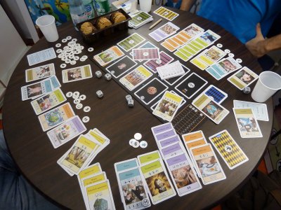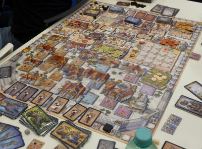 Staying at the booth of REPOS, I was lucky because a group on a table next to me just ended a game of Rampage, and so I could just change over in order to continue there.