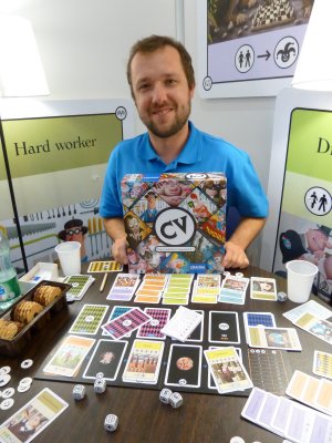 This game once again an example for the momentum small publishers may get from participating at the SPIEL. Last year Meelis Loover already had attended with a small cardgame called Food Chain which also focused on eating animals, but it was slightly more complex and fell a bit more into the category of "edutainment games". However, Meelis kept working on a game following broadly the same theme, and Om Nom Nom now is the result of his work. Meelis now was quite happy with the public appreciation of his game here at the SPIEL '13. He had brought 300 copies and did not do any advertising apart from the banners at the booth, but the entertaining gameplay and the cute graphics of Om Nom Nom had convinced enough gamers to take a copy home. Thus, it sold out on Saturday around noon, but Meelis already is planning for a new print run to bring the game back onto the market.