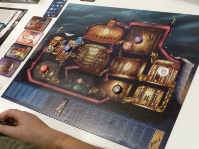 As indicated, the game operates on a variation of the mechanisms found in Mr. Jack, and so it's once again two players who face each other in a deductive duel. One player will take the role of the evasive Phantom who tries to force La Carlotta, the arrogant star of the opera house, to leave the city by arranging scary accidents, while the other player takes the role of the Police who tries to find out who is behind all these strange happenings in the opera house.