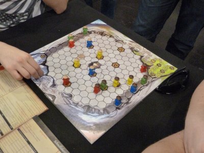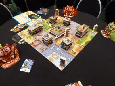 Checking back at the booth of MATAGOT, we more more lucky this time, since we got a possibility to join a game of Origin at the table which featured the oversized demo copy of the game.