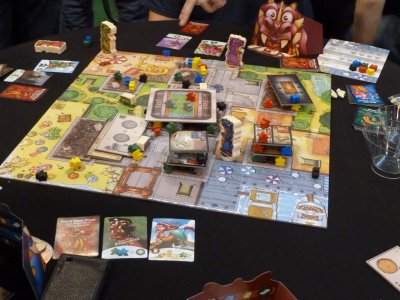 On first sight I wasn't sure what I should make of this theme - playing through several generations by making beneficial marriages. I asked myself whether this would be interesting enough to warrant a boardgame, but even after the first rounds here at the SPIEL '13 I have to confess that I am seriously hooked to this game! It's absolutely fascinating to see your family grow during the course of the game, an it's even more interesting to consider how a player's power increases through clever marriages and the use of the finely interwoven available actions. The cartoon-like graphics of the characters first may suggest that Legacy: The Testament of Duke de Crecy is a light game, but this first impression is wrong because an intelligent and rather enjoyable playing mechanism is waiting for the players. What a great start into my first real convention day!