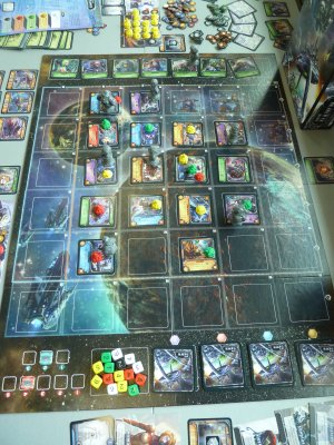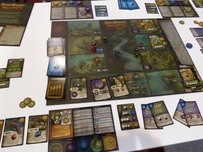 Some years ago games like Kingsburg or Airships re-vitalized the use of dice in boardgames by coining a new category of strategic dice-games. Over the following years this line has been more or less successfully continued by other games like 1969 or Alea Iacta est, but in general the quality of these games can be measured by the fact how well the authors were able to reduce the influence of luck. Here Ancient Terrible Things is a good example how a well-designed boardgame can make up with a bit of luck when enough care has been put into the other playing mechanisms, and considering the fact that even Richard's Launius' Arkham Horror needs dice to decide on tests and combat, I can strongly recommend the much shorter and thrilling Ancient Terrible Things to all pulp horror fans!