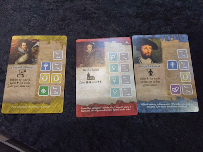Of course, the successful taking of such a card will require a player to spend some of his resources, and most of the cards then will provide new resources and either Short or Long Term Happiness. Long Term Happiness are the game's Victory Points, whereas the shifting of Short Term Happiness will begin anew at the beginning of each round. A good value of Short Term Happiness will give a player a benefit whenever he has to fulfil the requirements of some cards, and so the players will try to work out a fitting action sequence for each round of play, structuring their lives in the most fulfilling (or efficient) way.