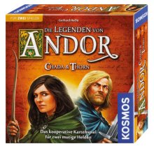 Die Legenden von Andor: Chada & Thorn is not only a nice continuation of the story begun in Die Legenden von Andor, but it actually puts the players to solve a puzzle of similar complexity. Just like the bigger game, timing issues are really important here, but instead of spending time for actions the players now will have to focus on coordinating their cardplay, keeping an eye on the cards which will sooner or later re-appear in each of their card rows. Due to some special cards and conditions each of the four stages of the game has some minor unique elements, and the replay value is increased due to the alternative Adventure cards which can be used on a random basis. Fans of the world of Andor will greatly appreciate this atmospheric new chapter in the stories of the main heroes, and also other players with a liking for cooperative adventure games should not shy back from giving the game a try. For players being new to the world of Andor the setting may be a bit unusual since it only covers part of a major story, but the game offers an interesting challenge and enough atmosphere to be played for its own merits.
