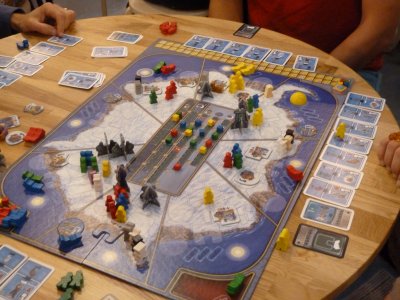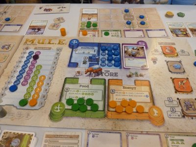 If you look at the stacks of high-class games in my dining room, this is one of the years in which it's especially hard to decide. With 7 Wonders Duel Antoine Bauza and Bruno Cathala have created a game which shines on every aspect, combining a great strategic potential with good player interaction and a gameflow which provides tension from begin until the end. From my perspective the one game which actually beats 7 Wonders Duel for me here at the SPIEL is M.U.L.E., the rather congenial revival of a computer game which I have known from the days of my youth.