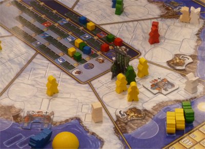 During his turn, a player just may perform one single action, and so the game will move forward with considerable speed since not too many things will change on the gameboard between two turns of a player. The available actions are as follows: