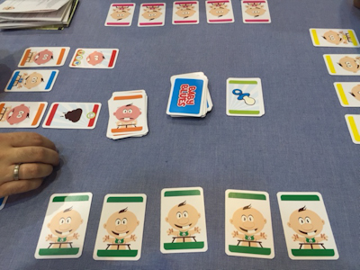 After the birth of my second child we decided that this would definitely be our last one. You know: one child is nothing, but two are a hard challenge for your daily routine. If you - like me - are playing and writing reviews of board games in addition to your daily job, you - after nights of crying- find yourself some days on your last legs. I do not know how many reviews I have written in the morning hours between 5 and 7 am, because I was called by my younger son and could not find back to sleep afterwards. Partly this could be the reason why I passed by the booth of TENK up to this moment. As the artwork is quite simple I even had problems convincing my friends, also fathers, to play a round of the game with me. But this day I had to try it and so I was stubborn. In the end they agreed and did not regret this decision. But why had I chosen to play this game now, while on the other days I went by without even having a closer look? The reason was definitely that this simple game was in the TOP 5 of BGG' s buzz from the SPIEL. So there should be something special with the game. ![]() In fact the game turned out to be very simple. Each player has a set of five happy babies. Happy? Well that pertains for the start of the game but will be changed soon after, as you will see. Each player is equipped with five cards that my have negative or positive effects. Negative effects to a baby are all the things that make a baby unhappy, so it soon after will start to cry. Basically these things are poo in the diaper, a stolen pacifier and hunger. Of course you are not forced to play these negative effects to your own babies, but you will better like to play them to the babies of your competitors. Each turn one of these bad cards can be played. ![]() Unhappy babies are not good. So a player must get rid of all these bad cards until the end of his turn or his baby will start to cry. This is the end for the baby in the game and so it cannot contribute to the player's victory points any more. Now what do you do with an unhappy baby? Of course you calm it by giving him or her what he or she is longing for: a new diaper, a pacifier back in the mouth and bottles of milk or food, that take the babies several rounds to consume. Temporarily music will also work. In his turn a player may play this good cards additionally to the bad cards to quieten his babies and make them happy again. Each matching good card cancels the effect of a bad one. That are the basic rules but there are also a few more complex cards to further cause disturbances to your competitors. So you can play empty bottles or cans to cancel the good cards a baby drinks or eats from. And you can play a nervous baby above an already crying one, to start a chain reaction to the adjacent babies. Baby Blues is a mean game. It is simple, fast and will be played by men and women likewise. To my astonishment we all liked the game. I can't even say exactly why. Maybe it is because we all had our experiences with crying babies, maybe it is because it is brilliant suitable for giving your friends a wipe. But it works. I saw a lot of people leaving the booth with more than one copy (me included). So I guess it is in the TOP 5 with good reason. I will check this with my wife and my various gaming groups, but I am already quite sure, that this will be of the most successful filler games for the next months. So with this small surprise I come to an end of my daily reports from SPIEL2015. I am leaving you now with mixed feelings. On the one hand I am glad that I will get some sleep, on the other hand I would like to continue playing at this great fair. But remember: There are only 367 days left until the next SPIEL by now. So stay tuned, a lot of reviews wait to be written. I hope you enjoyed our experiences. Bye-bye and see you back for the next SPIEL reports in 2016!!! Yours truly, Ralf Togler |