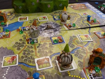 As a final footnote, during our Game of Gnomes this morning first me and then Nicole sometimes looked like we were in front, but in the end Gordon shamelessly used the "Hey, I am one of the designers!" rule on us, snatching victory in the last moment by plucking a Montane King mushroom. He even wanted to get the end game bonus for being highest on the mountain at the end of the year, but at least I could beat him there, displacing his gnome one level downwards. Hah, at least I won the Gnome of Honour for outstanding Mountaineering Mischief!
