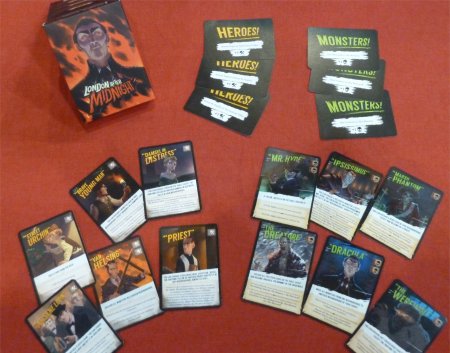 As can be imagined, the level of complexity grows with each new card added to one of the players' rows, and the players will have to keep their card rows in balance by adding valuable Equipment cards and other cards with positive effects. This is essential since each new card added to a card row actually will delay the reappearance of one of the three Hero cards, and so the Equipment cards with their limited field of use can partly replace the Hero cards when it comes to defeating monsters or moving.