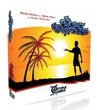 A topic which has not yet been exploited in dozens of boardgames is the simulation of a person's way of life. Of course everybody will know MILTON BRADLEY's classic The Game of Life, but over the last few years there only have been some few tries to design games following the topic. The games which spring to my mind are Filip Milunski's CV, a light-footed tactical dice rolling game from 2013, and the more strategic and humorous Fiese Freunde, Fette Feten (aka Funny Friends) which has been created by Friedemann Friese in 2005. However, I have always felt that this topic needed to be explored further, and so I was quite happy when I first heard about the upcoming release of The Pursuit of Happiness at the SPIEL 15. The year before ARTIPIA GAMES had released Lap Dance, proving that Konstantinos Kokkinis and his crew have a good hand for games with unusual topics, and now he has given designers Adrian Abela and David Chircop a possibility to present their take on a boardgame simulation of a person's way of life.