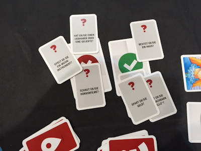 Now the first game we played at CRANIO CREATIONS was - of course - a deductive game. When I heard that Unusual suspects is designed for 3-16 players, I said why not, maybe just the right game to satisfy me, my family and my new gaming group. The story of the game is quite simple. A witness has seen a thief but does not really remember all details about him. But he can tell a lot of the thief's habits, tastes and opinions. How he exactly know these details, but not his look, nobody knows. Anyway, someone will know... So this witness is played by one of the players. Only he knows which of the 12 possible suspects, that in kind of suspect cards are placed on the table, is the thief. But as he cannot describe him, he must be interrogated by all other players (who present the police) and asked about the preferences of the thief. Now how does this work? Well, first thing we had to learn is that all players, with the exception of the witness, form the investigative team and work together. So in reality the game is independent from the player number, the investigative team only discuss about the suspects, but there are no individual turns of the single team members. The questioning itself is done by drawing cards from a question deck and reading out loud what the card says. In return the witness answers with yes or no. It is the task of the investigative team to discuss about who of the suspects might correspond to the answer. At a result they have to eliminate at least one card from the suspects (who (they think) does not correspond to the answer) for each round of questioning. But they may also eliminate more cards. If one of the eliminated suspects was the guilty, they have lost, if not, the questioning takes on until only one suspect card remains on the table. Of course, this final card must be the guilty. ![]() Quite a simple game and perhaps while reading this you might think: is this enough? At least this was my first thought after I had heard the rules. But on the other hand: what are the rules of those Werewolf games? And in fact, the game play was much more fun that I had thought. Together with the guy who explained the rules to us, my son and I had a lot of laughter in the discussion phase, because each team member had different ideas about who of the suspects correspond to the answers and who do not. All the different opinions were amplified with a - sometimes very strange - story about why a suspect should answer yes or no. My son loved the game and I also decided that Unusual suspects would get a chance in my large gaming group. For me the game had the right mixture between free discussions and subtle hints (the faces on the suspect cards). It is a family and a party game and I think that a lot of casual players will love it. ![]() After this experience I led my son to the booth of MATTEL where we had a closer look to their fourth game in a series for families and children. I got the chance to meet the two authors of the game, Jens-Peter Schliemann and Guido Hoffmann yesterday, so I wanted to see how the game would be taken on by the children. Introduction: Das Geheimnis der Zauberer (Mattel, Booth 2-C121)