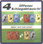 After choosing the team, the coaches have to chose 12 tactics card which will enable offensive-actions during the game. Normally, the coaches will chose cards depending on their team. So, if they have many defensive-players, they will take tactics cards requiring actions of defense-players. After the cards are chosen, each player mixes his tactics-cards and draws three of them, and then the referee will start the game... The game itself consists of 6 phases, with each phase having a duration of 15 minutes. At the beginning of a phase, each player may decide which tactics-card he will play for that phase. The coach who has played the highest card now will be attacking during this phase, whereas the other coachīs team will be defending. Depending on the card played by the attacker, the attacker now puts up some players (as shown on the tactics-card) to begin his tactic. After this, the defender also choses some players to defend against the attack. The strength-total for both attack and defense is calculated, and each player adds a random result from "0" to "3" to his strenght. If the attacker wins, he may enter the advanced phase and possibly score a goal, but if the defender wins, he will get a chance to make a counter-offensive (this means that the defending coach now may use his tactics-card and attacks.) After the calculation of the strength-totals, but before the game proceeds, the coaches have to adjust the strengths of the players used. Each player-card is turned 90 degrees clockwise, and now he will possibly have a new strength for his next action. Also, some players may receive a disqualification or an injury, and this may result in a coach losing strong, decisive players. Now only the changing-in of a reserve-player may possibly prevent his team from loosing...