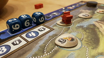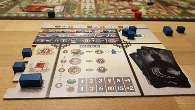 ![]() As a player in Gùgong you don't need much to start the game. Each player receives a set of four gifts of different worth, represented by cards with different values. After all, you need something that you can give to the officials. As a representative of a rich family you also get twelve servants, obviously you can't do everything on your own. At the beginning of the game, however, only six of these servants are available. The rest will remain in a personal supply from which you can get new servants during the game. Players will also receive a player board, a traveller, three grand canal ships, an intrigue marker, a victory point disc and a foreman who counts as a double servant. These items will be used throughout the game in the various areas of the Forbidden City. A key representative of the family is the envoy. He is used at the palace of heavenly purity. Only if he receives an audience with the emperor a player can win the game. If, however. the envoy is not let in, all victory points of a player will be worthless. So excellently equipped it can already start. In the forbidden city there are 7 different areas in which you can exchange gifts with the officials to get victory points or expand your influence. The game consists of three phases. In the morning phase mainly preparation and resource filling actions are performed. In the following day phase, the players carry out the barter transactions, and in the night phase various bonus actions are made. The most important mechanism of the game takes place in the day phase. Players can exchange one of their gift cards from their hand for a gift card from an official in the seven different areas of the Forbidden City. Additionally they can perform the corresponding action(s). Of course, the value of the gifts has to be considered when choosing a location. It is only a good exchange, if the gift of the applicant is more valuable than the gift of the official. In this case one may accomplish both the action illustrated on the gift card, and the local action. If the gift given is worth less or the same as the gift on the board, the bribe will be less successful. A player must either put back two of his servants in his personal stock or put a second gift card on his discard pile in order to be allowed to perform such an action. If that's not possible, there is always a chance ton exchange cards, but in that case it is not allowed to perform any actions. As you can see, a misplanning of the gift distribution considerably restricts the action possibilities. The planning and foresight of an opponent can of course also contribute to this restriction. As with any good rule, there is of course an exception. The gift cards with the value 1 can be exchanged free of charge with cards with the value 9. Finally the fruit bowl with has a value of 1 is very tempting for a healthy eating official! ![]() How bribery works has now been clarified. But what is the point of it all? The aim of the game is to collect the most victory points. Sometimes this can be done directly by getting the possibility to travel to cities on behalf of the emperor to collect taxes, in which case you immediately get a travel token with victory points. In another area you can exchange your gifts with jade, that will give you victory points at the end of the game. In many areas of the forbidden city, however, you must use some of your servants to perform the corresponding action. Most of the time, these servants will be returned immediately to their stock. Some actions, however, leave them on the board for a long time or even permanently. The use of the servants, however, always brings short-term and permanent advantages. For example, you can leave a servant permanently at the Decree Official to receive certain benefits in a morning or night phase of the game. If you use a servant in a port, you can, take an additional gift card in your hand and have one more action. Due to the very extensive and well thought-out action possibilities of Gùgong, it is not possible to describe all options in detail. An important place to understand the game, however, is the palace of heavenly purity and its envoy placed. Only the players who receive an audience with the emperor can win the game. To understand how that works, I must cast an eye on the night phase. At the beginning of the game and in each morning phase, three destiny dice are rolled and positioned at the top of the board. In the night phase the values of the dice are compared with the values of the gifts on the discard pile. For each match of a player, one servant is returned from the supply, increasing his options for action. If you are the player with the most matches, you even get three victory points and can move your envoy one square further towards the emperor. So, you can also challenge fate by making your exchange decisions according to the destiny dice values. When after four rounds (days) the game ends, you will find that corruption in the form of giving and receiving presents is a really enjoyable pastime. There still may be one or two surprises in the final account, because a player has concentrated on things that only come into play in the final account. So it is good to have some victory points in petto by yourself, but you never know for sure... ![]() Gùgong is a simple and complex game at the same time. The intersting game mechanism of exchanging gifts is easy to understand and easy to use. It meets a playing area that offers a wide variety of ways to use the gifts and use the resulting actions. The game becomes complex not only due to the sheer amount of possibilities, but also because of the daily structure of the game. This makes it possible to react with tactical variants to the actions of the opponents by planning activities across the day. When I read the excellent rule book for the first time, I initially thought that I wouldn't remember all the rules. When I then took a closer look at the game board and