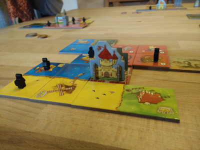 But still, both games share the same object and the main game mechanics. The players are kings. As usual, these kings aren't satisfied with what they have, but they are seeking new lands to expand their kingdoms and become richer and richer. Each king starts with his or her own territory, a lonely small domino tile in the middle of nowhere (or better in front of each player).