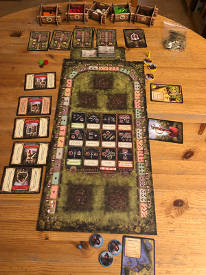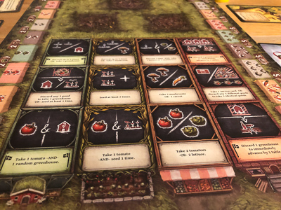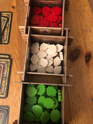 ![]() So let's notate: the outer design of Reykholt is once already great. From the graphical layout of the box through to the illustrations of the cards and the design of all components: Reykholt knows how to please. But can the mechanics match up? At least it is a Uwe Rosenberg game... Depending on the number of players (1-4, yes even a solo play is possible), the gameboard gives us more or less various actions to chose from. In a manner of a worker placement game we alternately choose from the available actions by placing our 3 workers on the board in phase 1 of the game. As we play a gardening game all actions have to do with seeding, harvesting and taking new vegetables directly from the market. ![]() Seeds have to be planted in a personal greenhouse that is divided into several parcels. And – after seeding a good in a free parcel – a harvest will fetch you the vegetable. Next to seeding and harvesting actions new greenhouses can be acquired and service cards can be taken to get missions and bonuses at special situations. The placing of our workers in phase 1 is followed by a regular harvesting time in which players can harvest one time from each of their filled greenhouses. After that it's tourism time, because gardening in Iceland is so unusual that it has become a full-fledged tourist magnet. Around the gameboard there is a tourism counter, demanding different conditions to be met to advance forward. Of course, every single condition has again to do with our gardening progress. To advance you must discard from your hard-earned goods, as shown on the signpost of the table your standing on. ![]() And of course, it is exactly this tourism track that determines who wins the game (the player who advanced their manager the furthest on this track). So, it's not the sheer mass of vegetables you have to harvest, you better should check your next requirements on this tourism track, before you decide what do plant next. To sum it up, b>Reykholt is a light worker placement game with a great design. The game itself is a little bit weaker than the equipment and the artwork let us assume. I mean it is a pretty solid game, but for a big Rosenberg I am slightly missing that certain something. The game is more a worker placement for beginners than a heavy brainer for the experienced gamers. But the idea and the all the details of the game are really lovingly done, so you just must love the game. With all that excellent components Renegade has spent the game, it is really a worthy introduction in the huge world of Rosenberg games. | ||