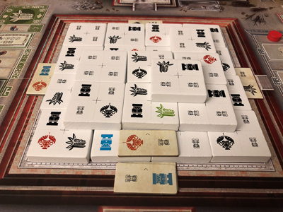 ![]() Like in many other games from NSKN GAMES there are a lot of variable action tables, benefits and minor option tiles, all of them you are drawn randomly during set-up. This will make sure that no game of Teotihuacan – City of Gods will ever be the same as the game before. The players have to adjust their strategy to the drawn possibilities and the highly modular gameboard. However, there is also a standard set-up already printed onto the game board. In Essen, Blazej Kubacki from NSKN Games (who is also one of the game developers) told me that this set-up should be OK for the first 6-7 games, before players want to adjust something. So, you can forget the more complex set-up and concentrate on starting the game. And indeed, up to now and after some playtesting, I have not missed anything with the standard set-up. But it is great to have options for the future. But there is still a lot to learn, because the possible scoring mechanisms are manifold. The most impressive element on the board is definitely the Pyramid area. Depending on the number of players there are different patterns to build up the starting point of the Pyramid, but in each and every case, the Pyramid tiles to do so are drawn randomly, so the Pyramid will never look the same. As said, there are a lot of different ways to score: players can earn victory points for further building up the Pyramid or by decorating it. The better the new tile fits to the existing ones, the more victory points are granted. Another possibility to score is to influence nobles by building houses for them and advancing on the Avenue of Death. And finally it is always good to worship to the gods (there are three different divinities in Teotihuacan, each with his or her own temple). An interesting element of the game are the worker dice. Similar to last year's Dragonsgate College the value of a die determines what you can achieve with this worker. But in contrast to the other game, the dice in Teotihuacan – City of Gods are not rolled, but must be developed. And once they reach a power of six, they ascend with the result that the player receives victory points and resources and the worker die comes back with a power of 1 again (a new worker is born). This mechanism we have also seen before in one of the earlier games from NSKN GAMES: Praetor, maybe you still remember that. ![]() Speaking of resources, I have to mention that Cocoa, a kind of currency in the game, is often needed and a limiting factor. As a result, you can not only go for victory points, but you must also care for maintaining supplies. And there is not only the Cacoa, there are also other resources like wood, stone and gold, before you can reach to the top. So let us see how all this works together: The huge board of the game shows us the eight different action tables along the edge. This is the place where we move along with our worker dice, three of them for every player at set-up. In the middle of the board the huge, impressive Pyramid is built with the help of all players by activating an action on one of the action tables. And next to the Pyramid, on the one side we can find the temples, where we can climb up with our game pieces, while on the other side we find the track for the Avenue of Death and the supply of the houses for the Nobles as well as the Calendar track that determines the round end. Basically, all you do in your turn is to take one of your unlocked workers from an action table (some actions lock the workers until they are unlocked again), move the worker die clockwise 1-3 action tables further, and perform an action on the target action board. There are always several options to do so, some cost you cocoa, for some you need resources and still other are free. A lot depends also on how many dice you have on that board and how many other players have dice there. There are action tables for collecting new resources, for moving up in the temples, for constructing the Pyramid, for building the houses for the Nobles and for achieving new technologies. Some actions even can bring you new worker dice, so you have more options to choose from. Of course the value of the die is also very important as it determines the output of your action. Basically the higher the value, the more experienced the worker and the higher the output. ![]() You can score by taking actions, but also very important for scoring is the eclipse that also ends a round. This eclipse triggers a scoring phase and it happens exactly three times, before the game ends. Then the progress on the Avenue of Death, the contribution of the player to build up the Pyramid, and the skill to collect different masks from various actions is rewarded. And finally a player has to pay his workers during the eclipse, if he doesn't want to loose victory points. Teotihuacan – City of Gods is really well done with a lot of different things going on. I think that it will take some time, before you find a clear strategy to win the game. But the game also condones the one or other bad moves. There is always a second best alternative. Teotihuacan – City of Gods reminded me at once of Tzolk'in, and indeed, Daniele Tascini is one of the authors who is involved in both games. But I think that it is the better game, because I think it can be played faster. I always hated those down times in Tzolk'in, when other players were calculating their best moves to score. The ranking and the scoring possibilities seem to be clearer in Teotihuacan – City of Gods, but the ways to score are still very manifold. Confronting Blazej at Essen with my fears, he assured that they kept that fact in mind. As a result they designed the action phase of a player as simple as possible. As said, it is only one move to make with a worker die and performing the resulting one action. Not five actions in a row, but only this single action. Still the game is complex and a game duration of approximately 90 minutes should be scheduled. Anyhow, the size 